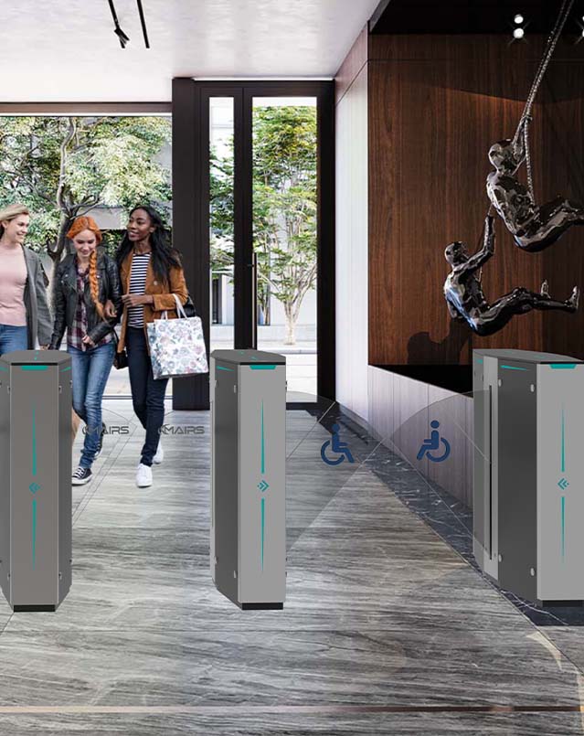The meteor series flap barrier is very reliable, safe, and has the characteristics of fast speed. It can pass 40-45 people per minute, and the channel width can also reach 900mm, making it convenient for people with disabilities to pass through in wheelchairs or pedestrians carrying suitcases.